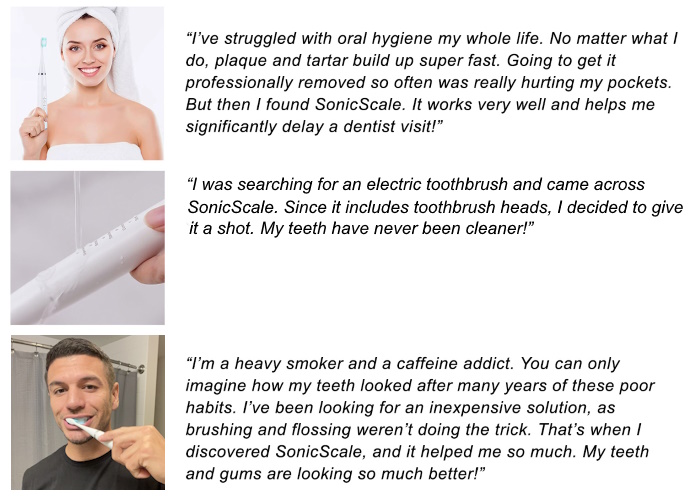 The best way to remove plaque, tartar, and tooth stains is, of course, by visiting a hygienist. However, these visits can be expensive and time-consuming, making them inaccessible for many. That’s where SonicScale comes in – a convenient and affordable at-home ultrasonic toothbrush designed to help you maintain your dental hygiene effortlessly!